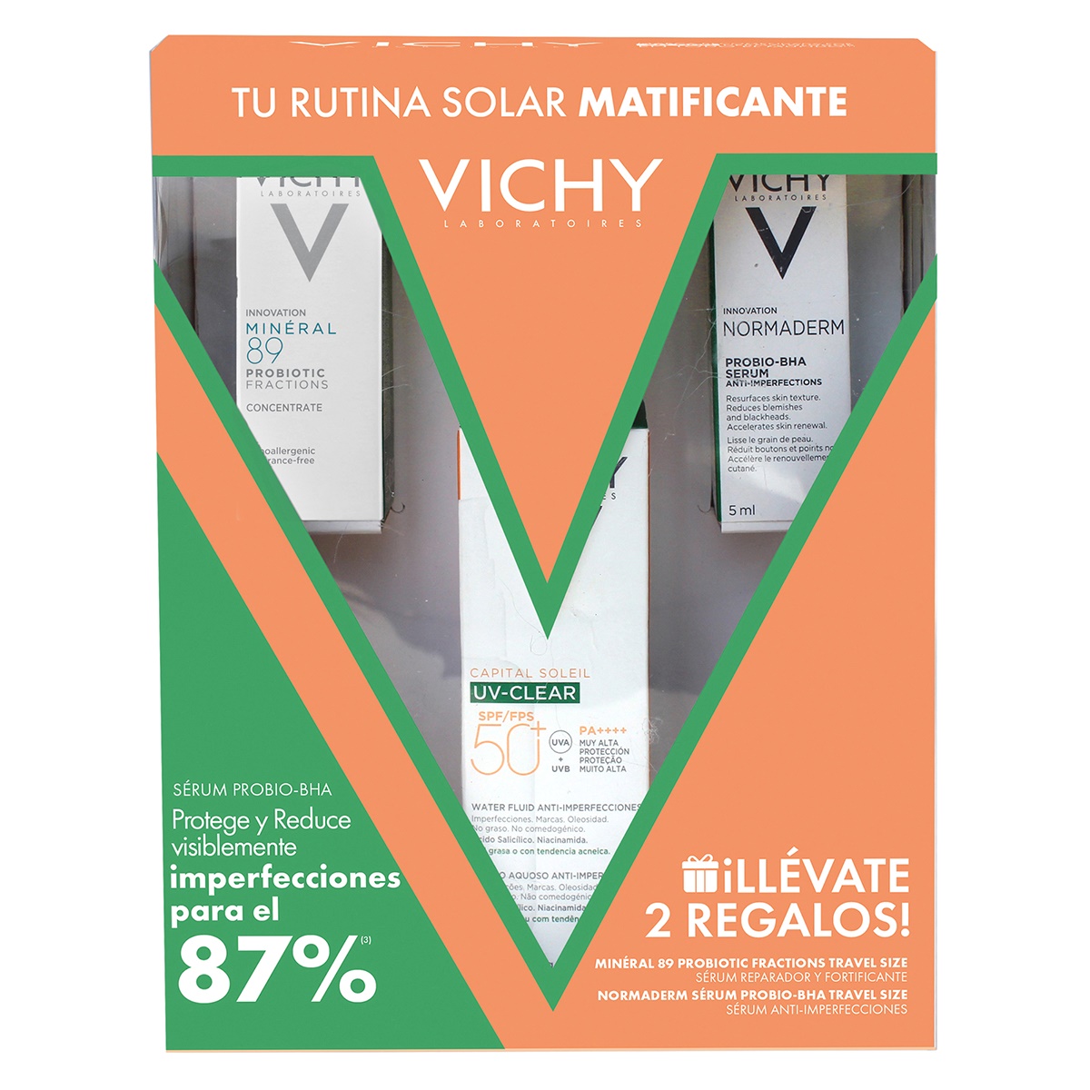 Kit Capital Soleil Uv-Clear Fps 50+ 40Ml + Mineral 89 5Ml + Normaderm Probio Bha 5Ml cantidad